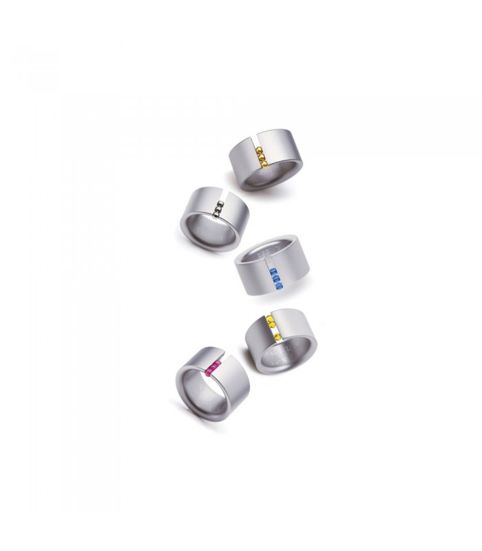 Anell d'acer gris de Niessing amb 3 boletes de cristall de roca que tenen moviment