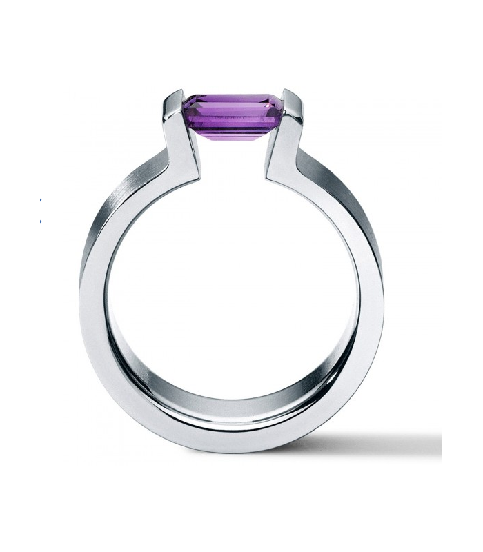 Anell d'acer Victory de 7m.m. amb pedra amatista.