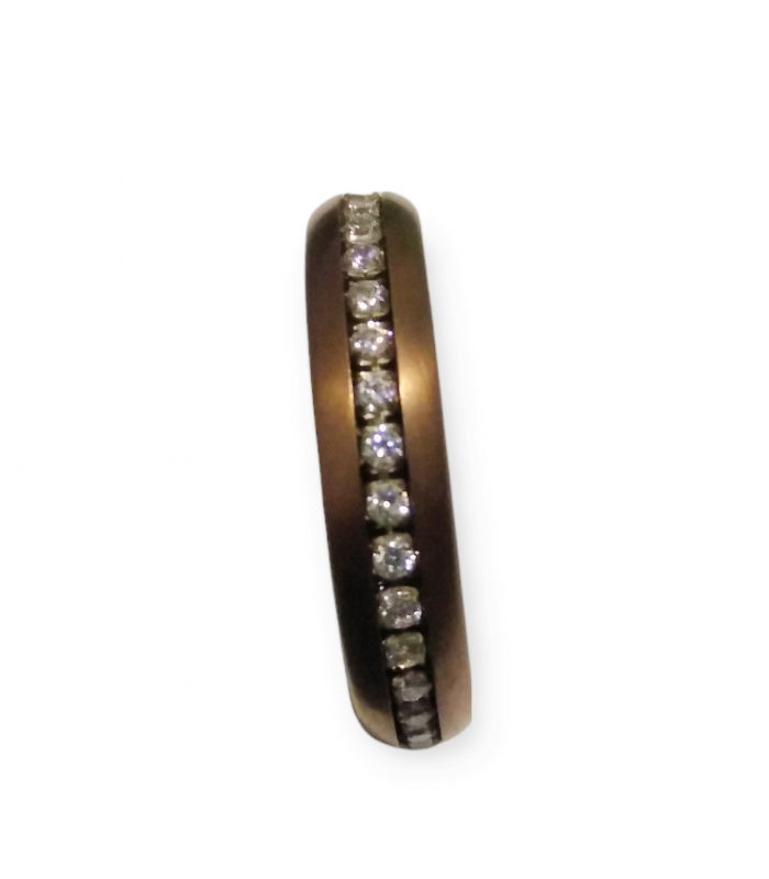 Anell acer 8 m.m ample amb cèrcol de circonites talla brillant color coure.