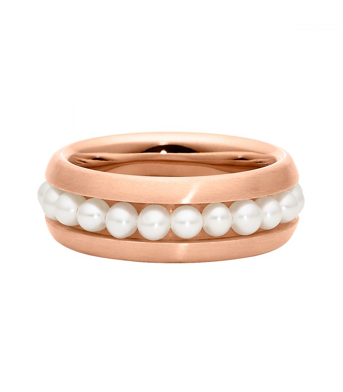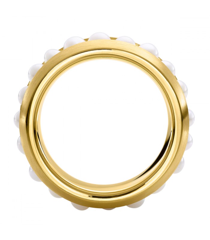 Anell d'acer amb perles d'aigua dolça blanques amb la garantia del Taller de l'Orfebre
