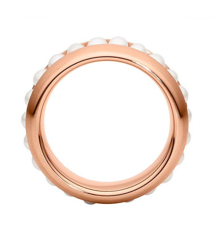 Anell d'acer amb aro de perles blanques d'aigua dolça