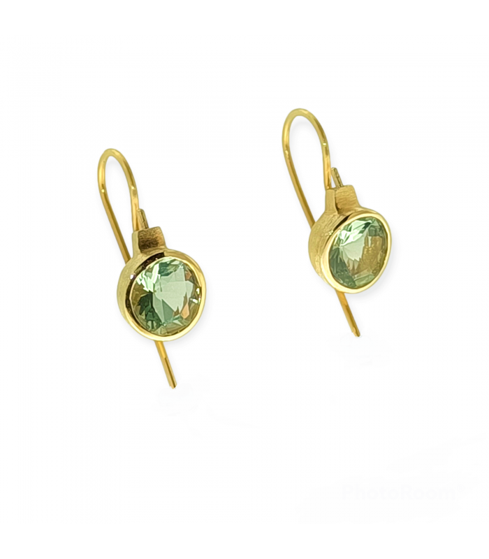 Arracades de plata 925 amb bany en or groc de 18 kt i pedra natural amatista verda.