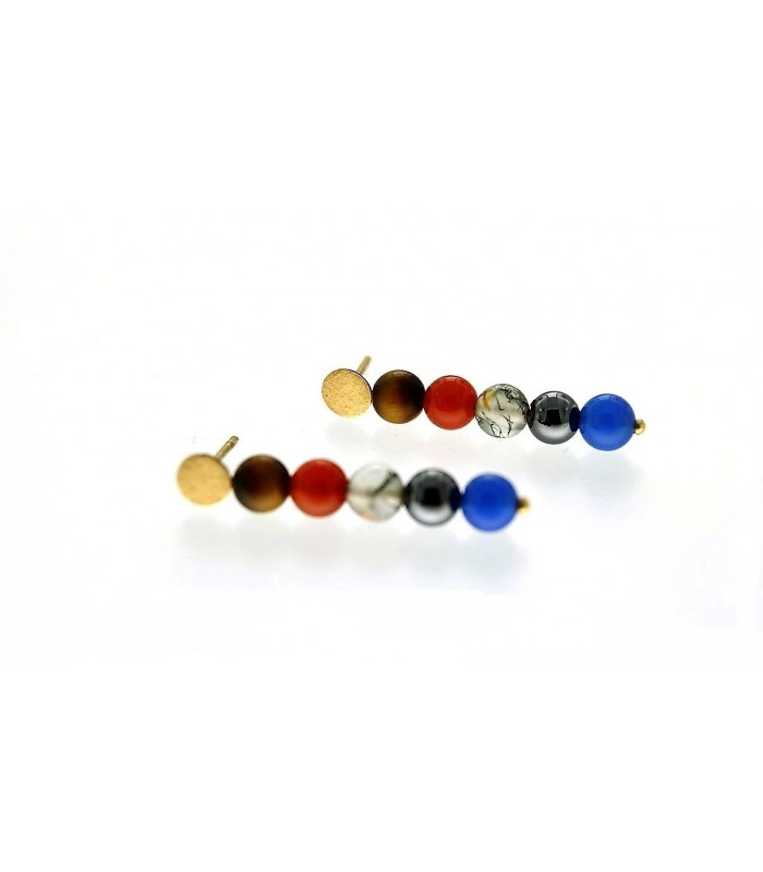 Arracades d'Or 18 quirats groc acabat matitzat amb 5 agathes de diferents colors. Tancaments a pressió.