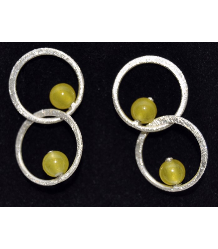 Arracades de plata 925 mat ratllat amb boletes agatha groga.