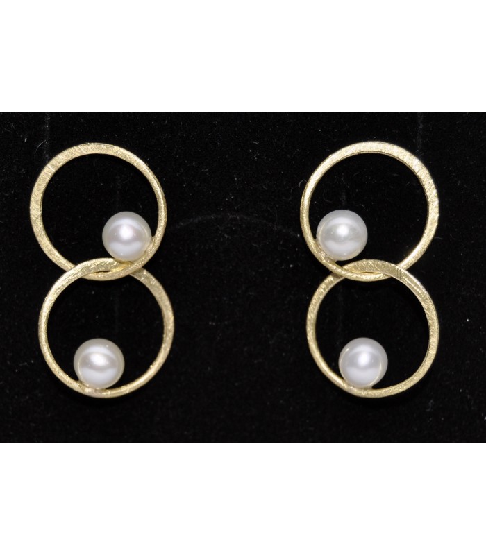 Arracades d'Or 18 quirats groc acabat mate ratllat amb perla blanca aigua dolça.