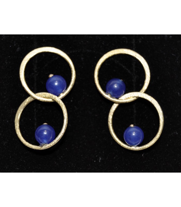 Arracades d'Or 18 quirats groc acabat mate ratllat amb boletes agatha blava.