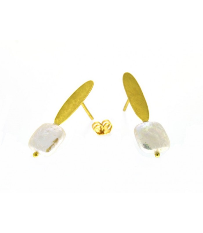 Arracades d'Or 18 quirats groc acabat mate ratllat amb perla aigua dolça cuadrada
