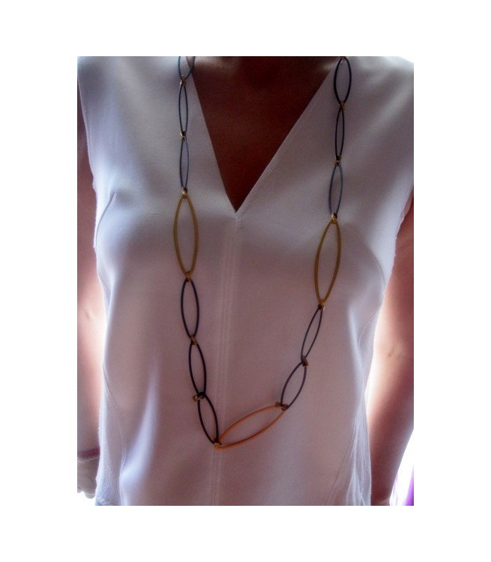Collar enllaços realitzat en plata 925 amb anelles ovalades desiguals rovellades combinades amb anelles banyades en or groc.