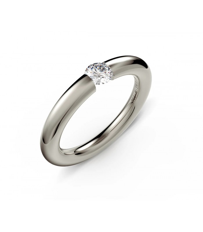 Niessing Spannring® Round: un anell circular i un diamant flotant es el que es necessita per convertir-se en una icona de disseny i romandre durant més de 40 anys.