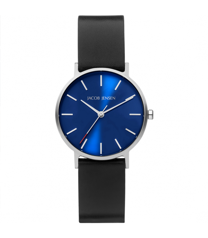 Jacob Jensen Timless Nordic JJ171. Un rellotge fantàstic fet de materials duradors i resistents. La caixa del rellotge de titani és agradable a la pell i també molt lleugera. El rellotge JJ171 de 32 mm d'ample també inclou un cristall de safir, un índex de ratlles i un moviment de quars fiable. La corretja de cuir és flexible i es pot ajustar en diferents mides.