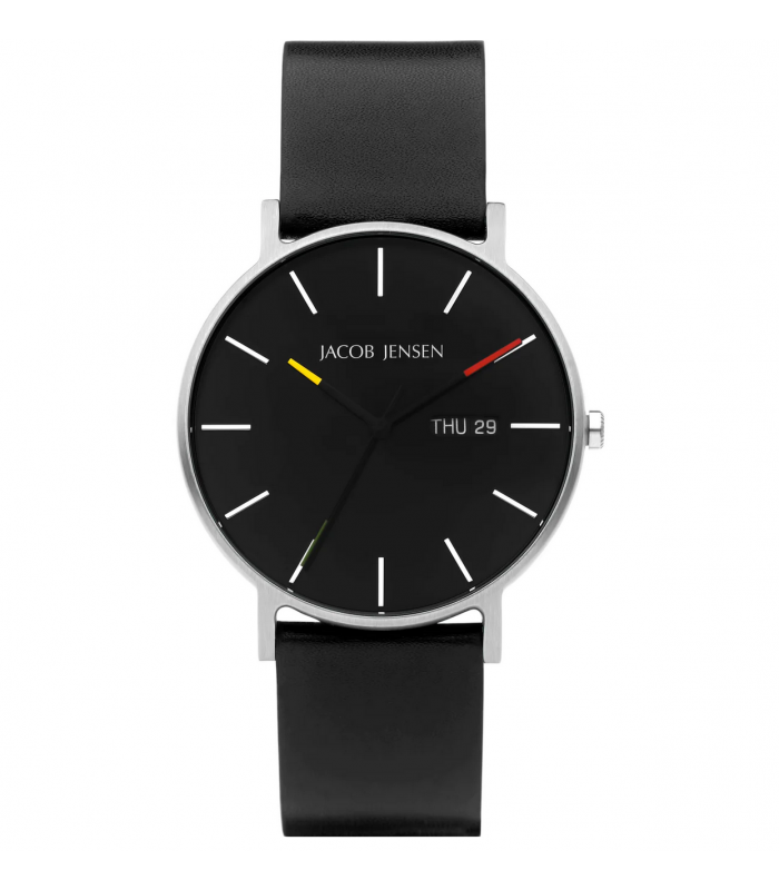 Jacob Jensen Timless Nordic JJ162. Un rellotge fantàstic fet de materials duradors i resistents. La caixa del rellotge de titani és agradable a la pell i també molt lleugera. El rellotge JJ162 de 40 mm d'ample també inclou un cristall de safir, un índex de ratlles i un moviment de quars fiable. La corretja de cuir és flexible i es pot ajustar en diferents mides.