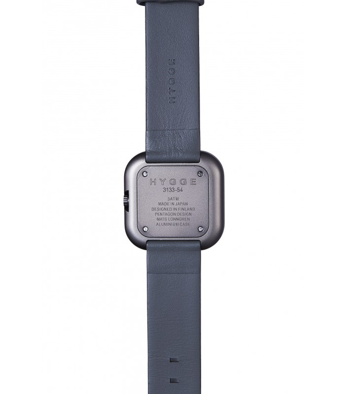 Rellotge quadre de caixa d'alumini i corretja en pell legitima en color gris pedra fosca, moviment japonès, analògic i resistent a l'aigua 3 atm.