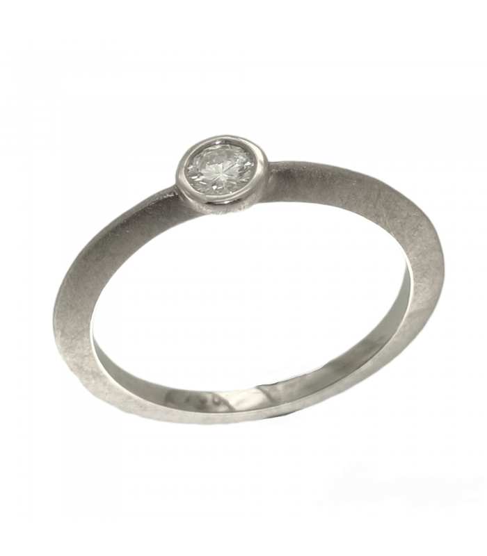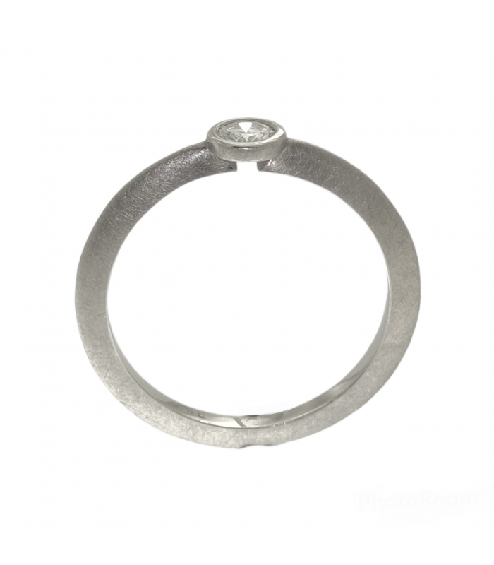 Solitaire ring in 18 carat white gold matt outside / polished inside with brilliant cut diamond TW-VS1 (H) 0.15 carats.