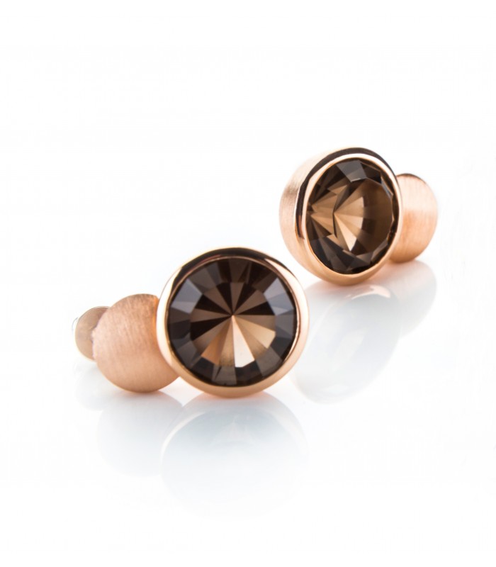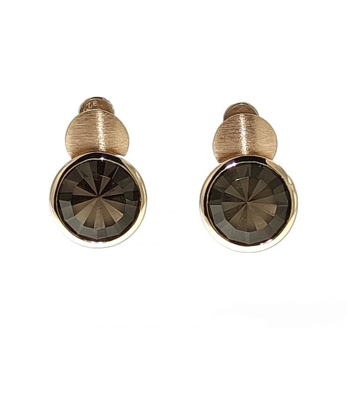 Smoky quartz natural stone earrings in 925 sterling silver with rose gold 18 kt. Close pressures.