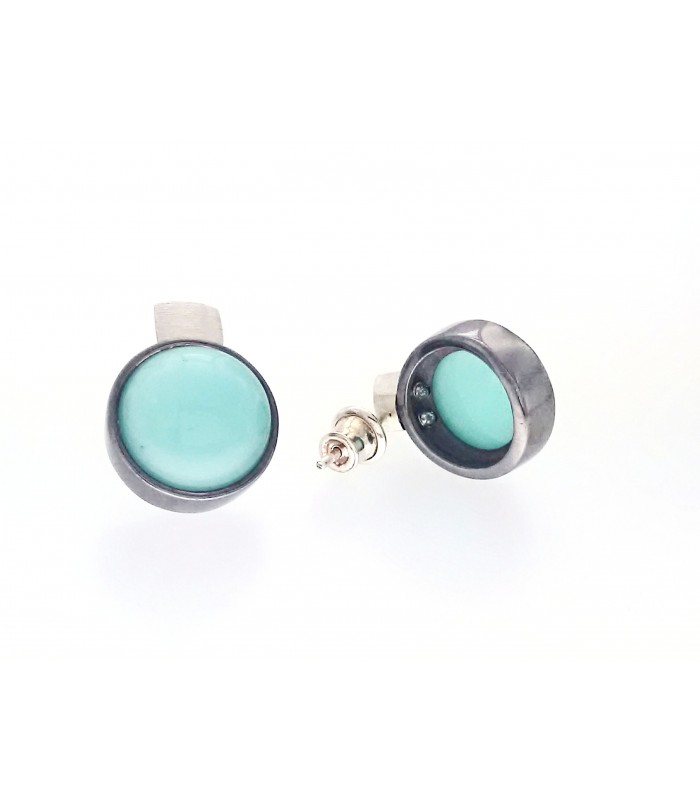 Natural stone earrings, turquoise rock crystal and 925 silver with black rhodium. Close pressure.