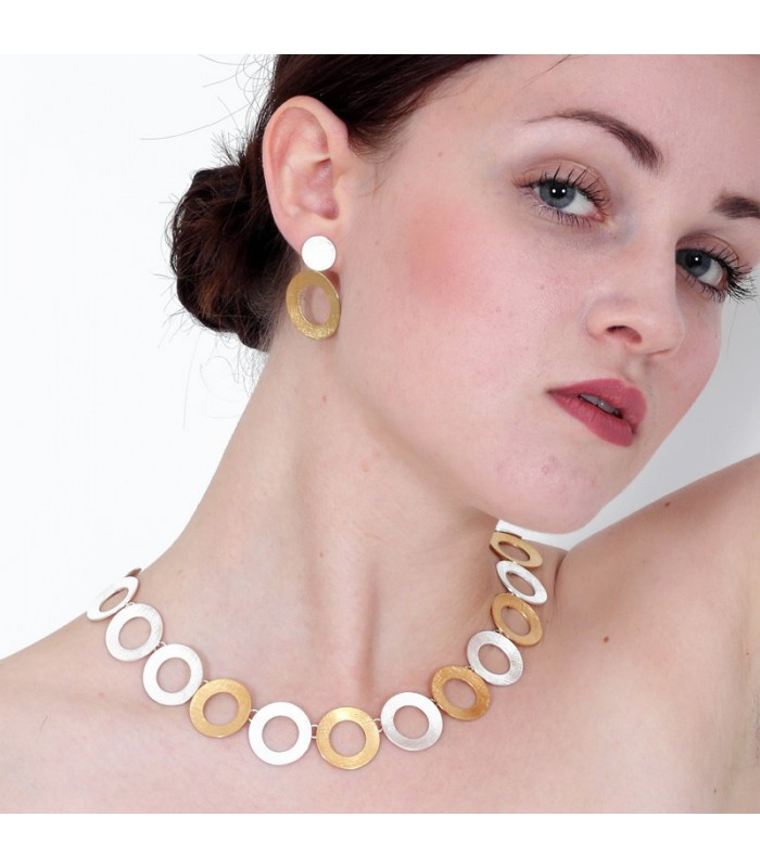Necklace Earrings made in 925 silver white combining rings with gold bath 18 carats.