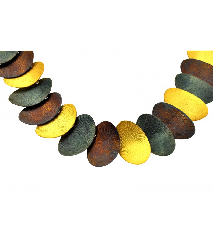 Necklace inspired by nature at this time so special that it is autumn when the fall of the yellowish leaves sow a cloak. Made by hand in an artisan way, it is a unique and exclusive piece in El Taller de l'Orfebre.