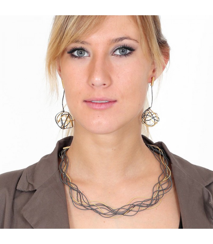 Necklace Bicolor yarns in silver 925, patinated and with bath gold 18 karat unique and exclusive piece made in our workshop.