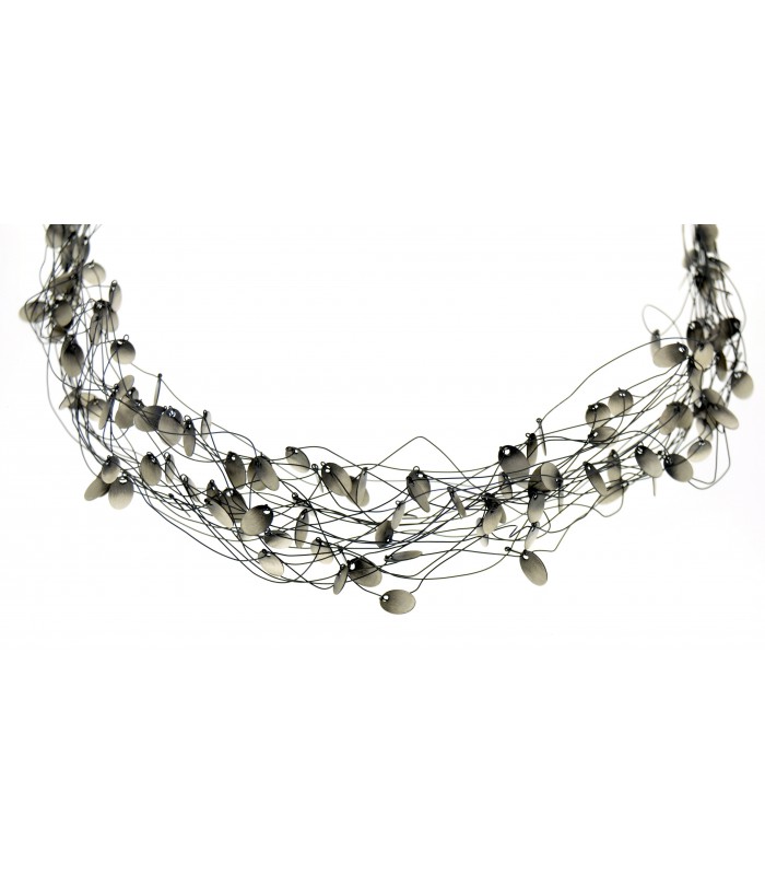 Necklace in 925 silver with threads and oval pieces skated.