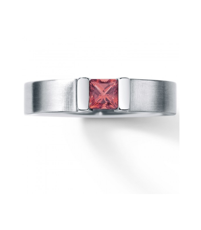 Steel ring Victory 4.5m.m. with princess cut rhodolite stone.