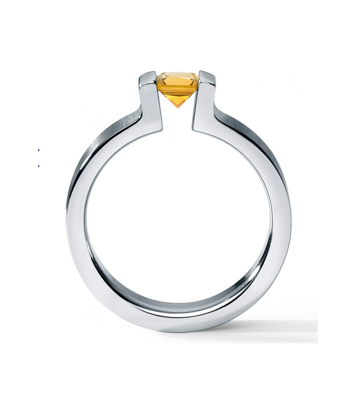 Steel ring Victory 4.5m.m. with princess cut citrine stone.