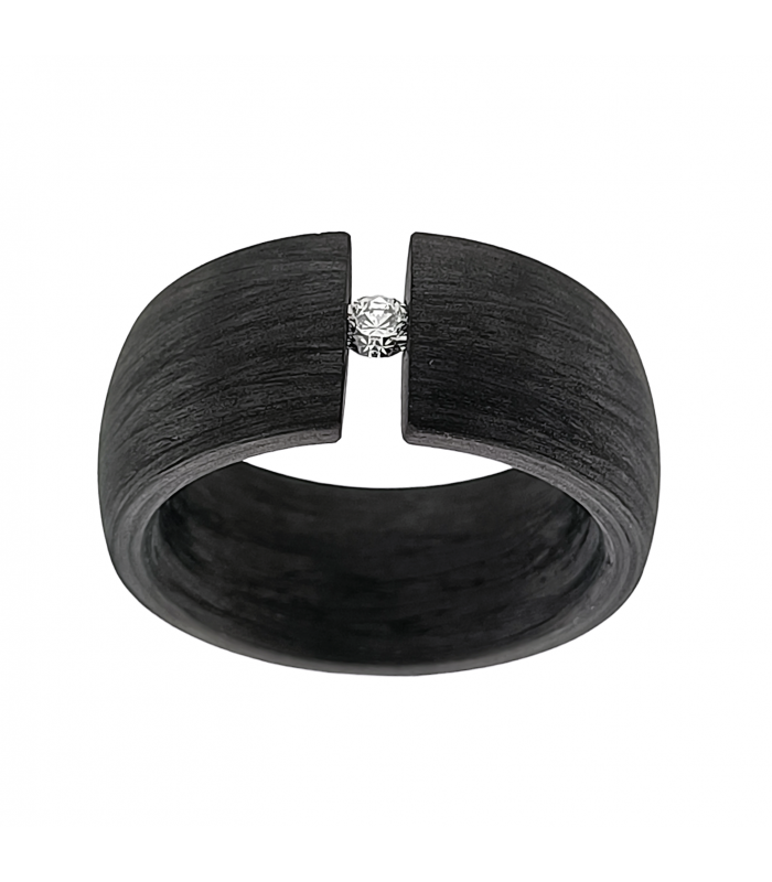 Carbon ring 8 m.m wide domed with 1 diamond 0.10 ct TW / VSI. set in tension.