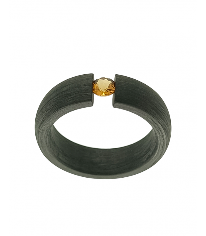 Carbon ring 6 m.m with 1 Gold Citrin 4 m.m set in tension.