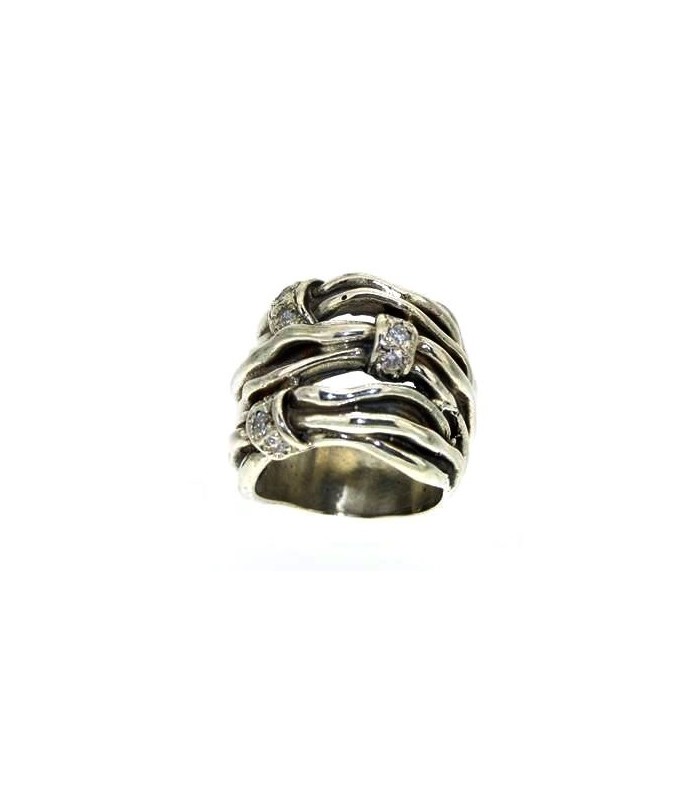 925 silver polished and patinated ring with 9 brilliant cut zircons.