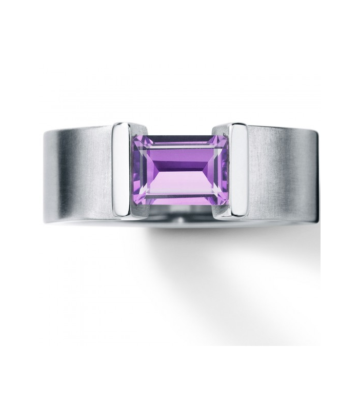 Anillo de acero Victory de 7m.m. con piedra Amatista.