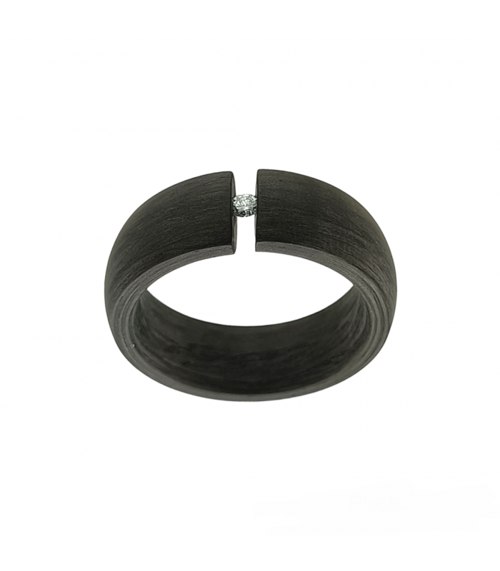 Anillo carbón 7 m.m ancho con 1 diamante 0,05 ct TW/VSI. engastado en tensión.