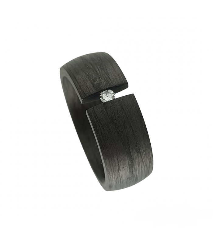 Anillo carbón 8 m.m ancho con 1 diamante 0,05 ct TW/VSI. engastado en tensión.