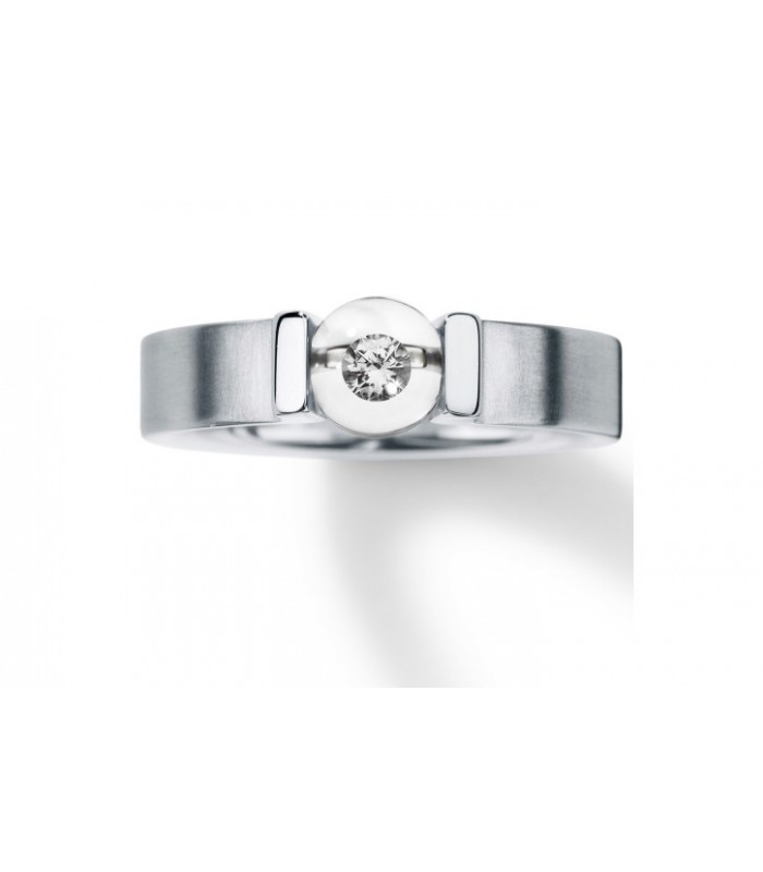 Anillo de acero Dig Victory Kugel de 4,5 m.m. con diamante de 0,03 ct TW-VS1 dentro de una bola de cristal transparente.