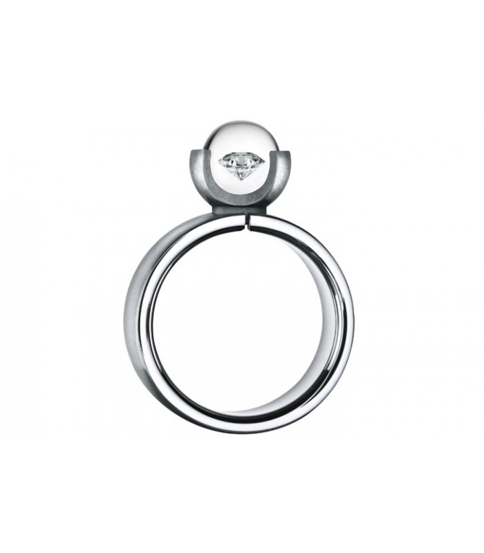Anillo de acero Kugelina de 7 m.m. con diamante de 0,06 ct TW-VS1 dentro de una bola de cristal transparente con efecto negro.