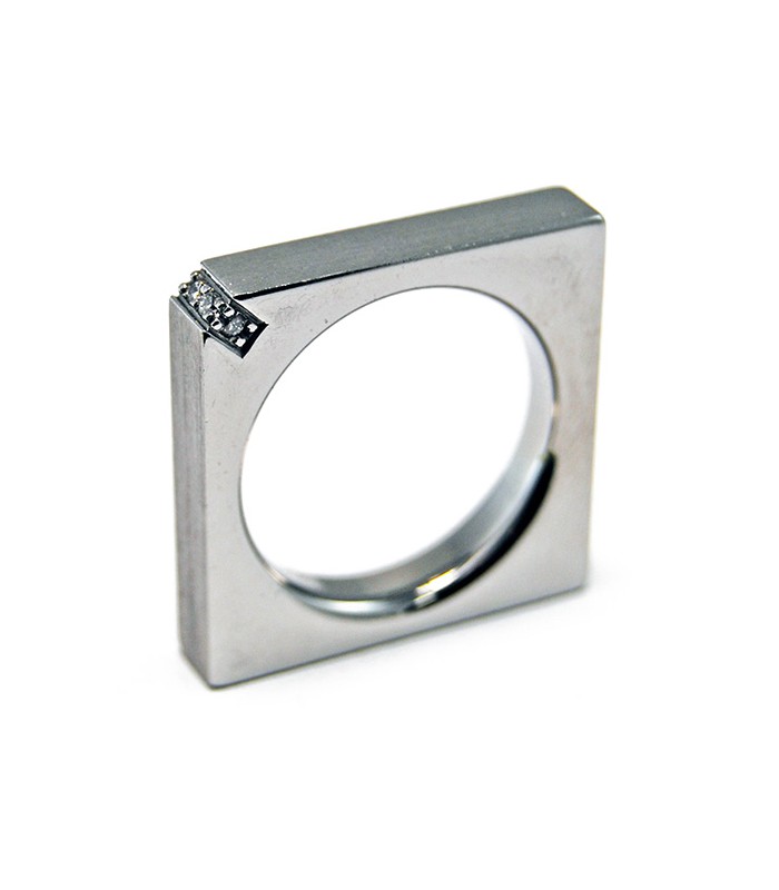 Anillo en acero Cubus 4,5 m.m ancho con 4 diamantes en uno de sus laterales TW-VS1 0,06 ct