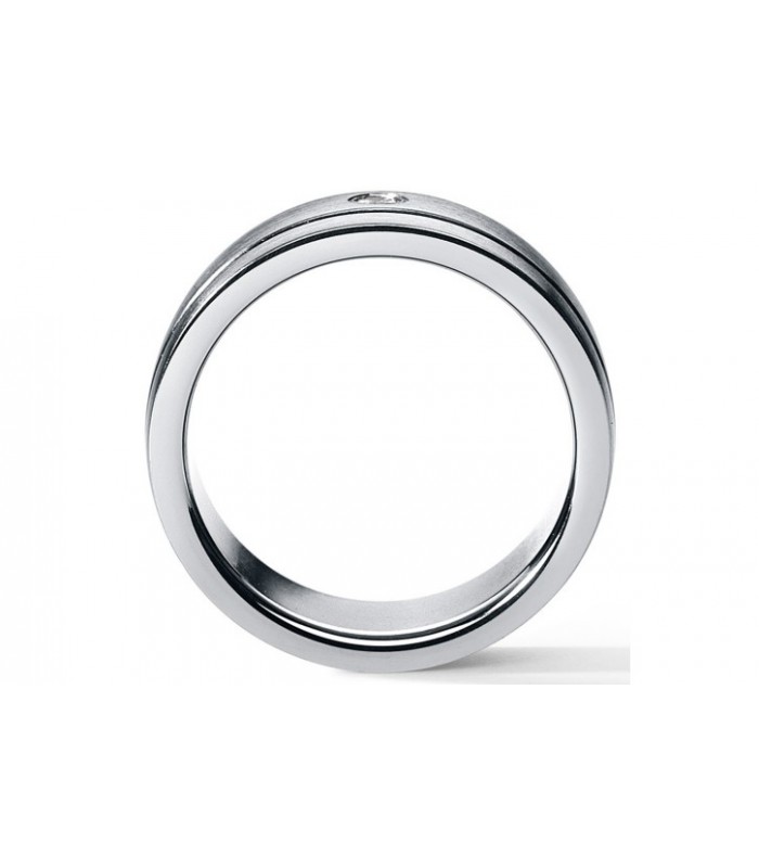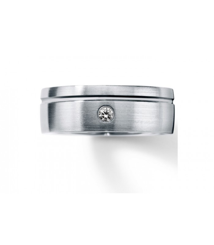 Anillo Zentrish en acero de 7 m.m ancho con acabado efecto hielo con surco y diamante talla brillante de 0,05 ct TW-VS 2,35 m.m.