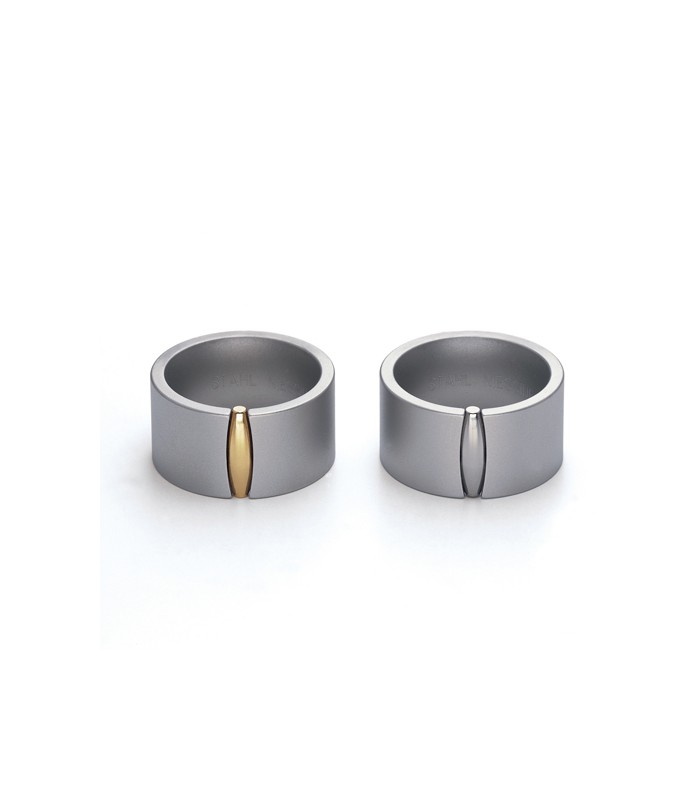 Niessing Zeppelin en acero gris con pieza en oro amarillo 18 kilates en el centro.