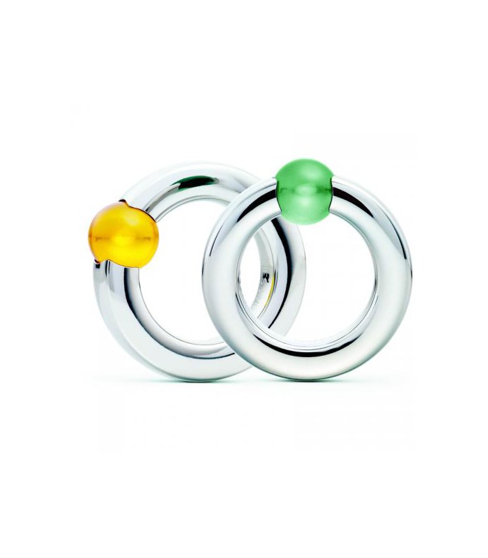 Niessing Planets en acero gris con bolita de cristal de roca que se mueve 360 grados posibilidad de acabado matizado o pulido