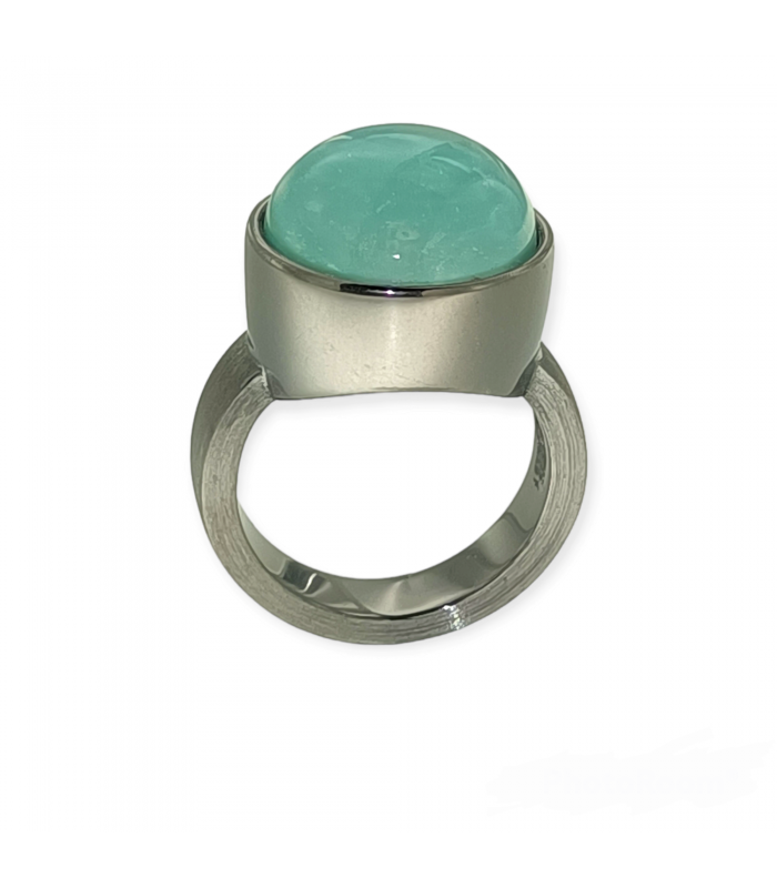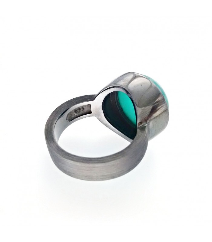 Anillo de piedra natural, cristal de roca color turquesa corte cabuchón en plata 925 con rodio negro.