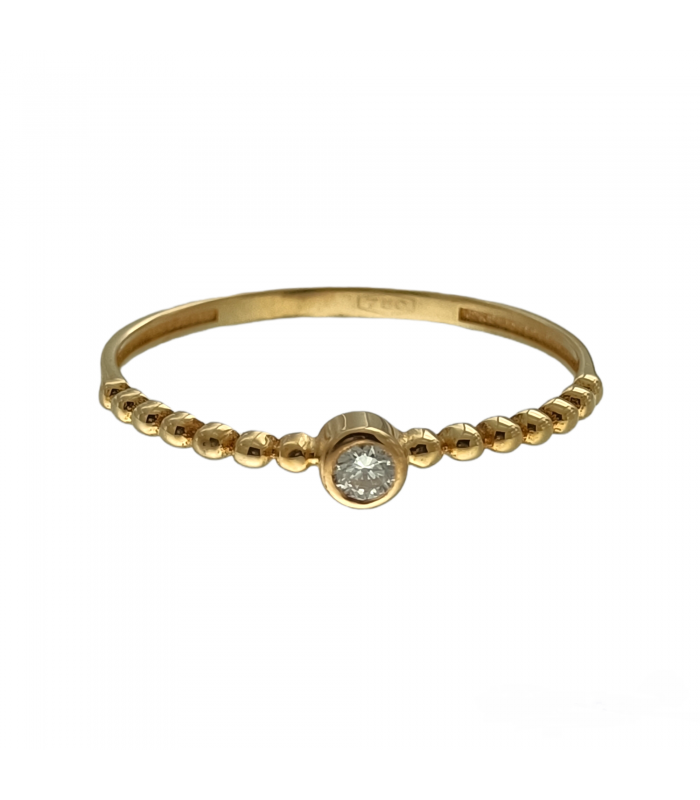 Anillo solitario bolitas en oro amarillo 18 quilates con diamante talla brillante TW-VS1 (H) de 0,07 quilates