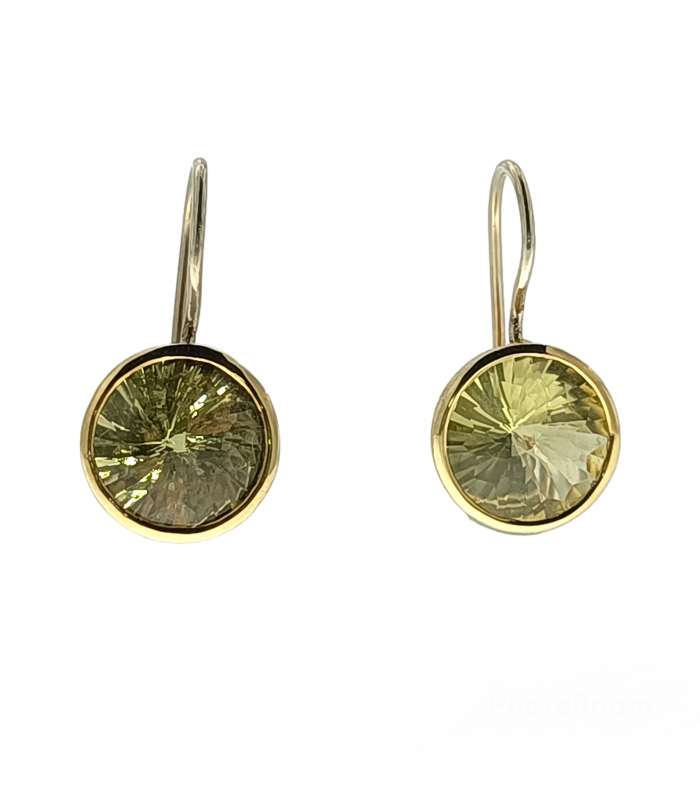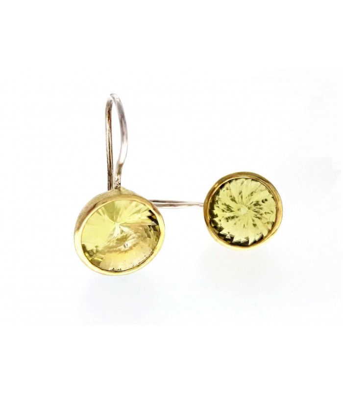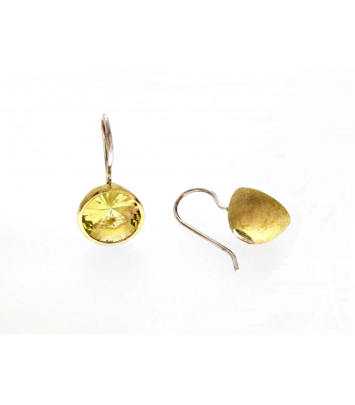 Pendientes en plata 925 con baño en oro amarillo de 18 kt acabado matizado y piedra natural citrino limón.