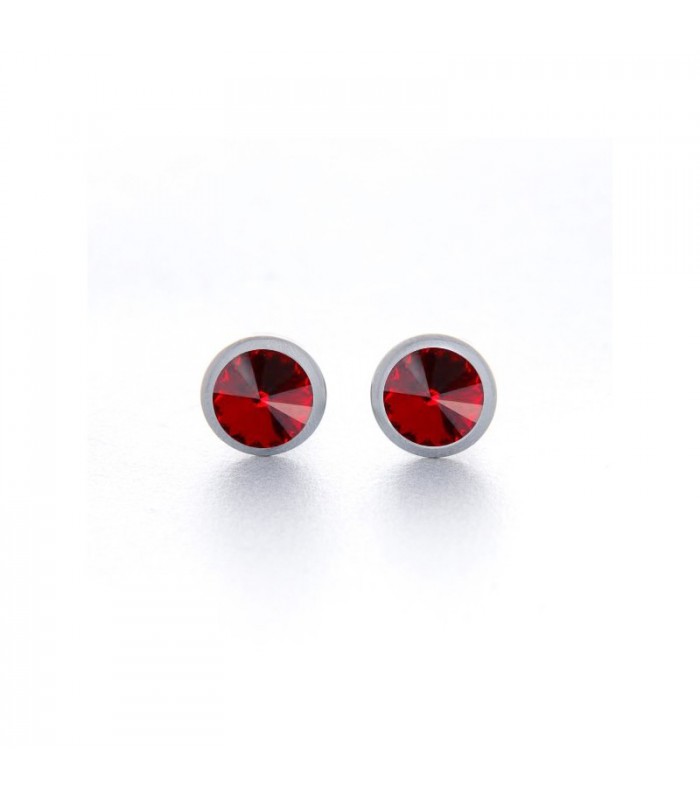 Pendientes en acero piedras swarosky color rubi rojo.