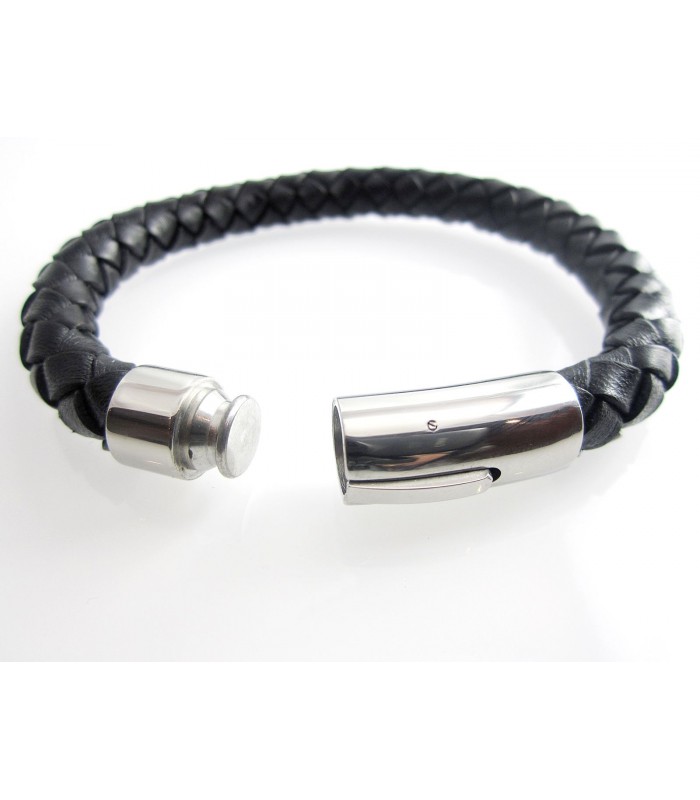 Pulsera masculina "Nile" en cuero Negro con cierre de acero. 21 cms